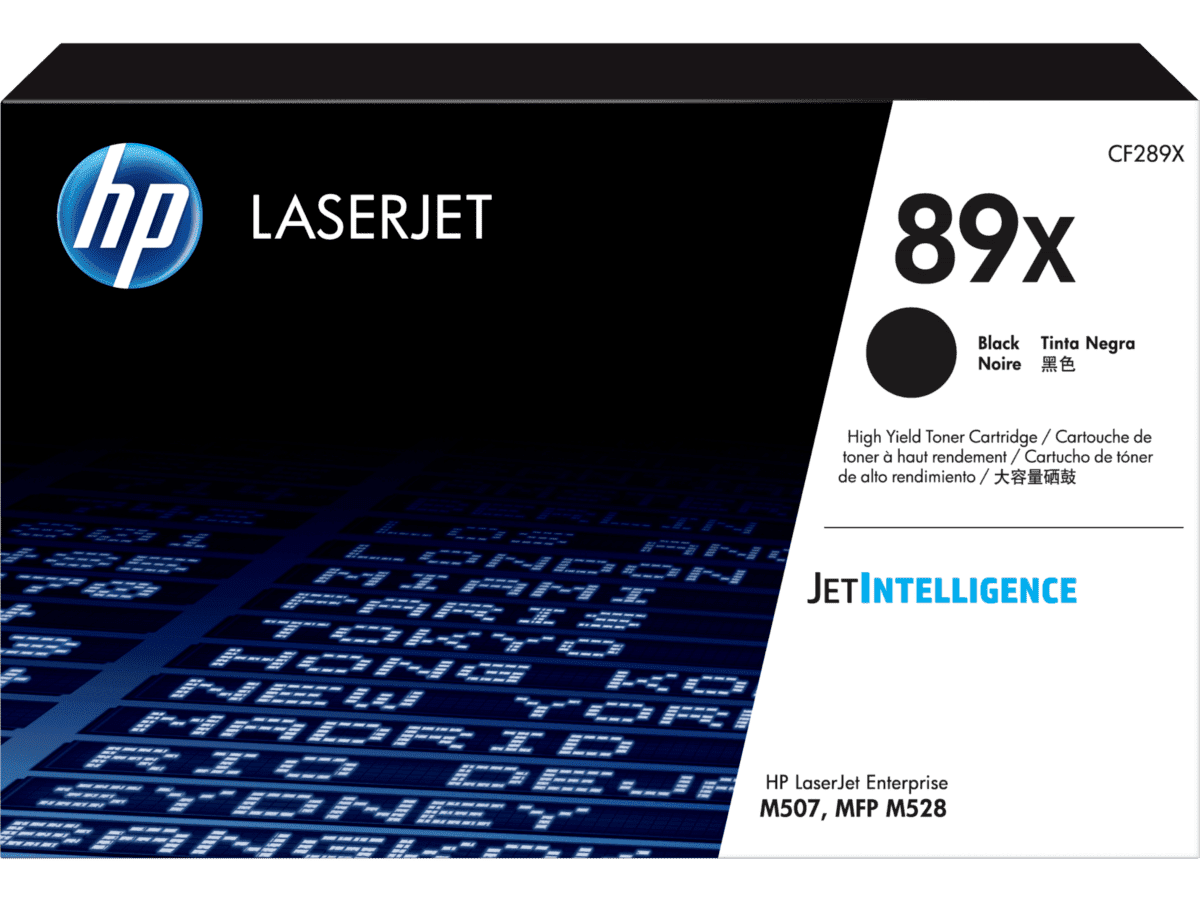Tome la decisión más rentable para su volumen de trabajo. Ordene hoy su cartucho de tóner HP 89X Negro de Alto Rendimiento (CF289X) y benefíciese de un menor costo y menos interrupciones.