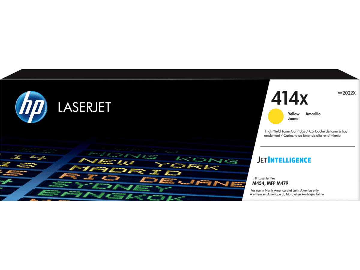 Invierta en el cartucho HP 414X Amarillo Original para alto rendimiento. Garantice máxima productividad, calidad de color excepcional y protección anti-fraude en su flota HP LaserJet.